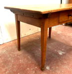 table bureau de monastère en noyer massif un tiroir en façade piètements conique avec bagues en laiton H 76 cm L 112 cm P 80 cm . XIX siècle .
