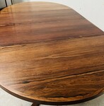 table en teck à allonges conçue par John Mortensen pour l'usine de fabrication Danoise Heltborg Mobler table pliée H 70 cm L 158 cm P 58 cm table ouverte H 75 cm L 158 P 175 cm . XIX siècle .