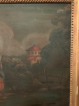 Trumeau de style Louis XVI en bois patiné et doré Miroir a encadrement doré Peinture décorative a décor d'une scène galante Bon état Dimension H 180 x L 117 x 4 cm XX siècle Plus de photos sur simple demande TEL 0609061579 Pour une livraison a l’international, me contacter merci