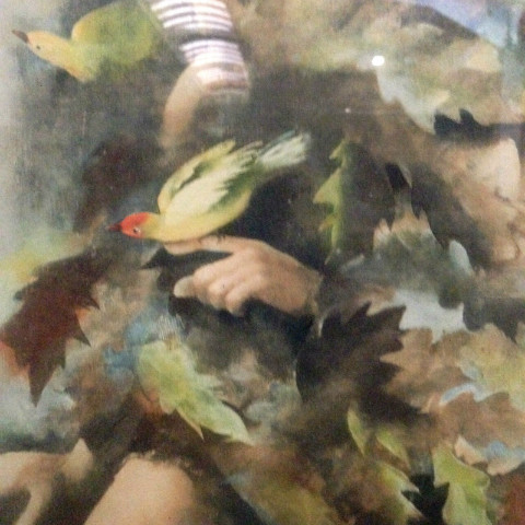 belle encadrement d'une jeune fille à l'oiseau sous verre portant la signature de Mariette Lydis numéroté 89/200 épreuve d'artiste . XX siècle . L 69 cm H 88 cm P 6 cm