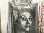 Joli dessin encadré Portrait de" Jeanne Marguerite de Constantinople " Porte une signature ( illisible )et un numérotage 15 / 700 Très bon état / XX Siècle