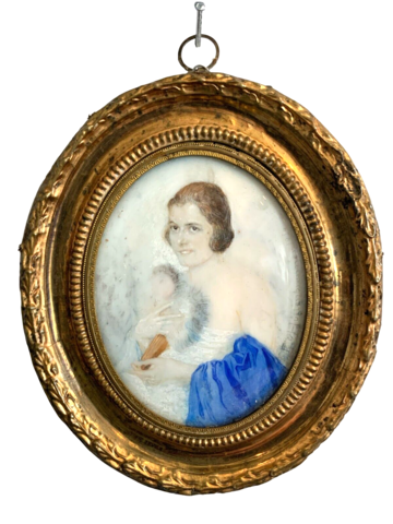 Portrait en miniature d'une jeune femme Bon état Dimension H 12 x L 10 cm XX siècle