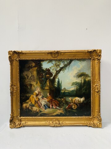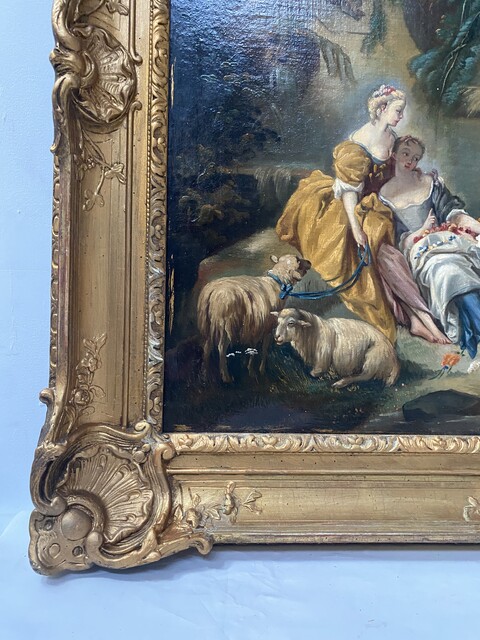 cadre H 85 cm L 100 cm P 10 cm (cadre en l'état redoré)peinture H 69 cm L 81 cm P 1.5 cm