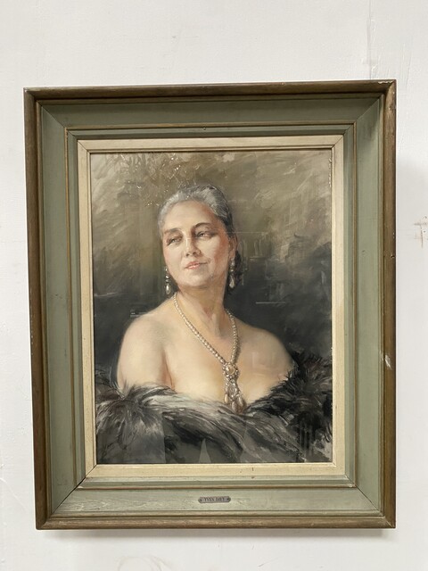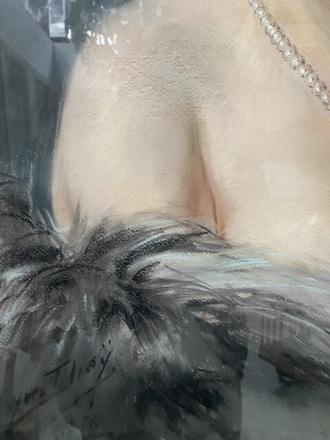 œuvre de Yves Diey portrait d'une élégante dans encadrement