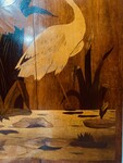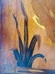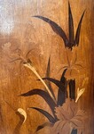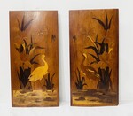 paire de panneaux en marqueterie à décor de flamant et fleurs et feuillages époque art nouveau probablement école de Nancy H 79 cm L 39 cm P 1.5 cm . XX siècle .