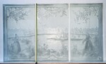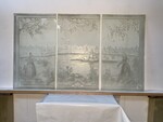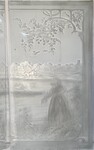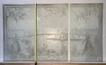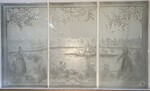 exceptionnel suite de trois panneaux gravées à décor de paysage et personnages verre sablé H 150 cm L 252 cm (84 cm x trois) début du . XX siècle .