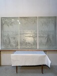 verre sablé H 150 cm L 252 cm (84 cm x trois)