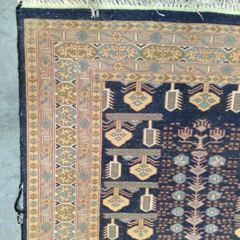 tapis d'orient fait main couleur dominante jaune motif géométrique . XX siècle . H 213 cm L 195 cm
