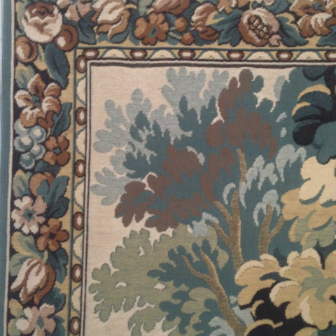tapisserie décor de sous bois décor avec flamand rose . XX siècle . H 200 cm L 120 cm P 0.5 cm